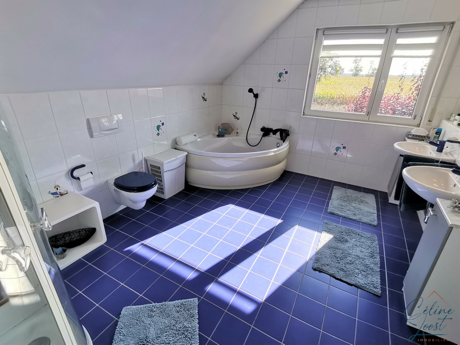 Au 1er étage : un palier desservant 3 chambres dont une avec dressing et une vaste SDB (avec douche, baignoire et WC).