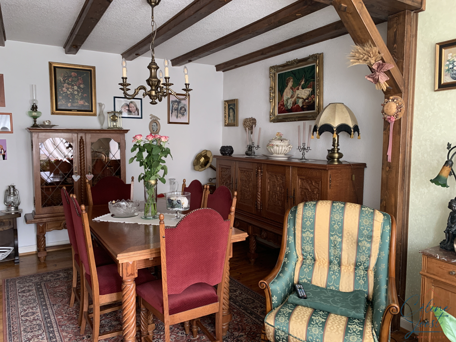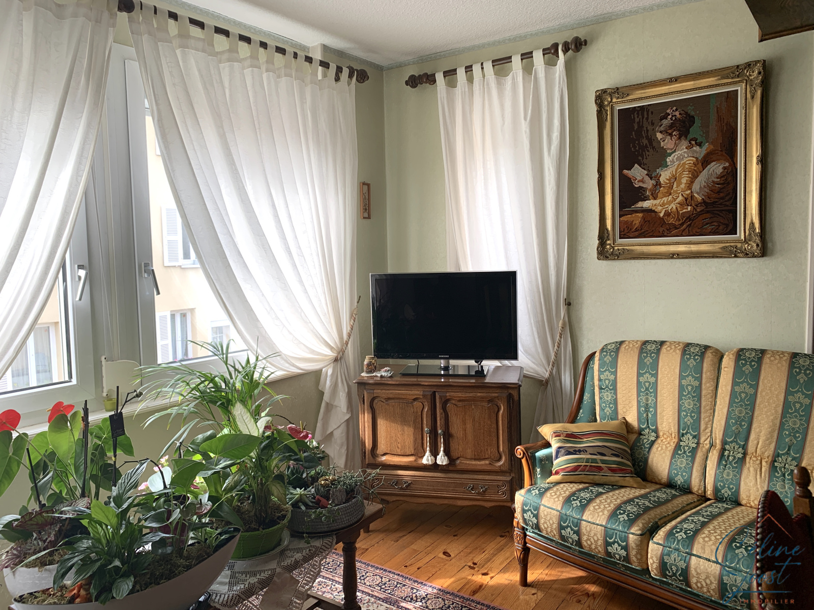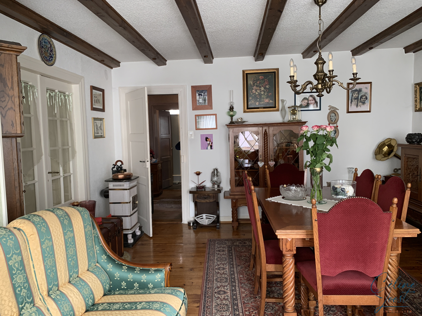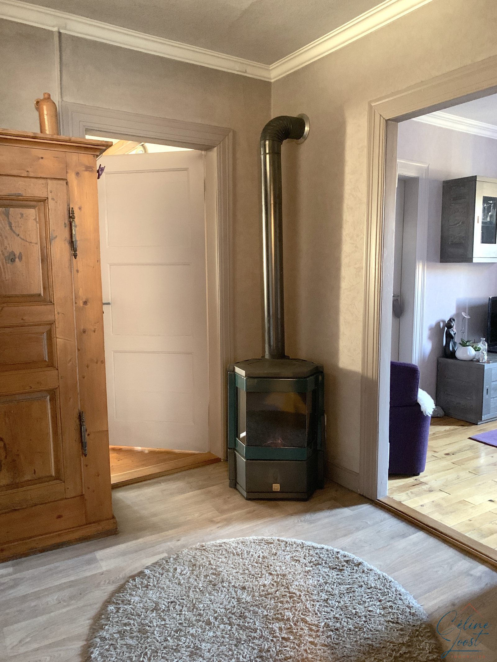 Au 1er : un appartement de configuration identique, actuellement loué à un couple retraité. Chauffage par un poêle au fuel.