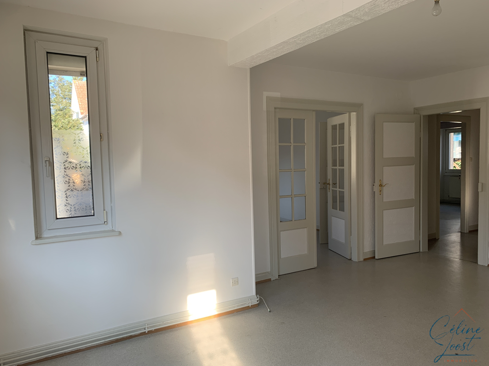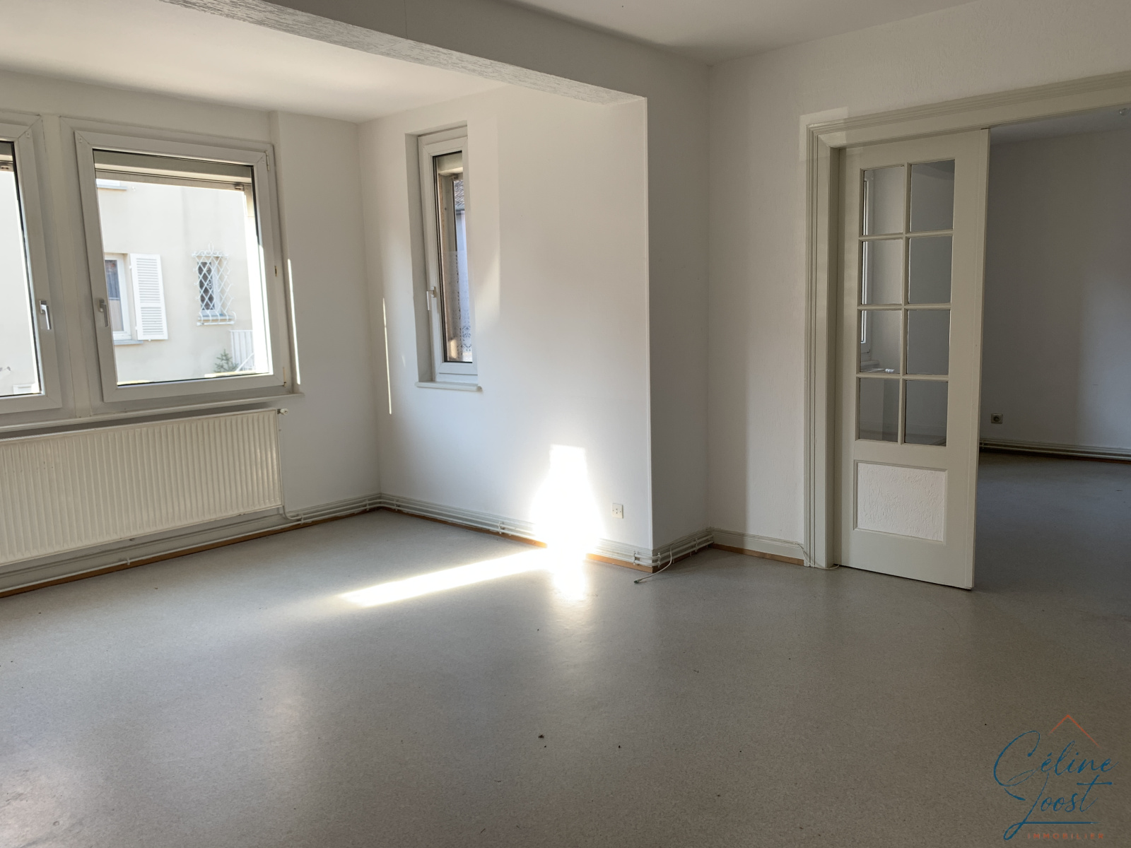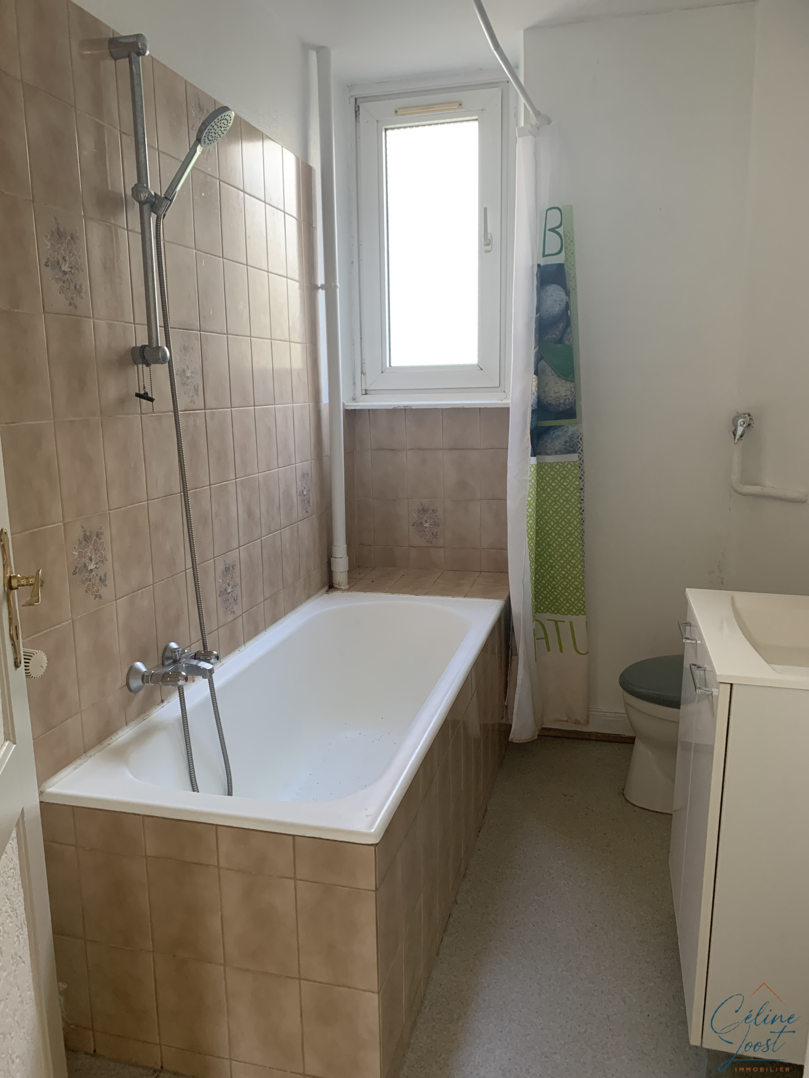 Au RDC : un appartement 4 pièces d'env. 75 m2 comprenant une entrée, un séjour, une cuisine avec accès à un balcon, deux chambres, un bureau ou chambre d'enfant, une SDB avec WC. Chauffage individuel au gaz.