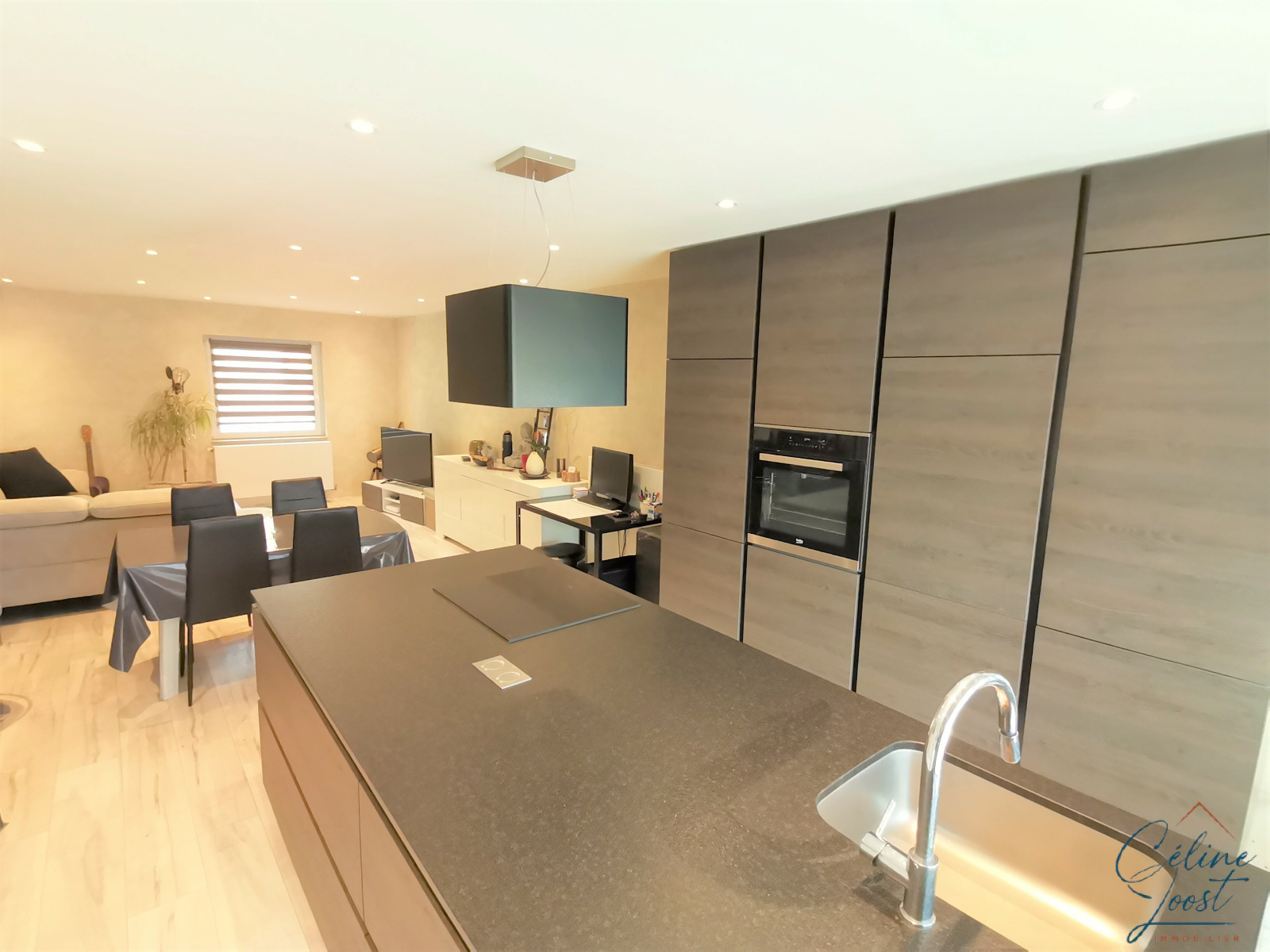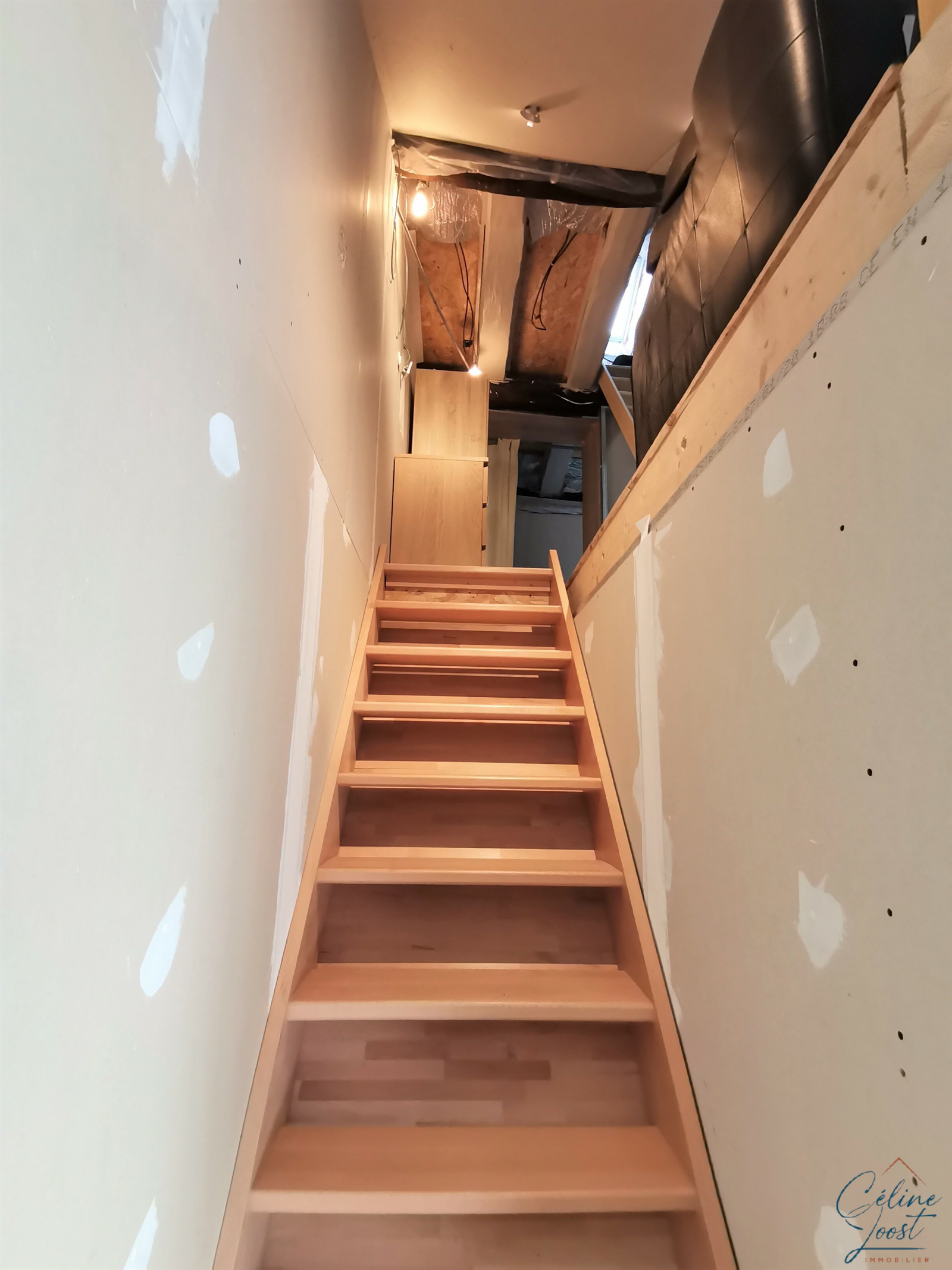 Au 1er étage (rénové) : une vaste pièce de vie avec cuisine équipée ouverte sur un salon/séjour (avec BSO sur baies vitrées), une salle d'eau avec WC.