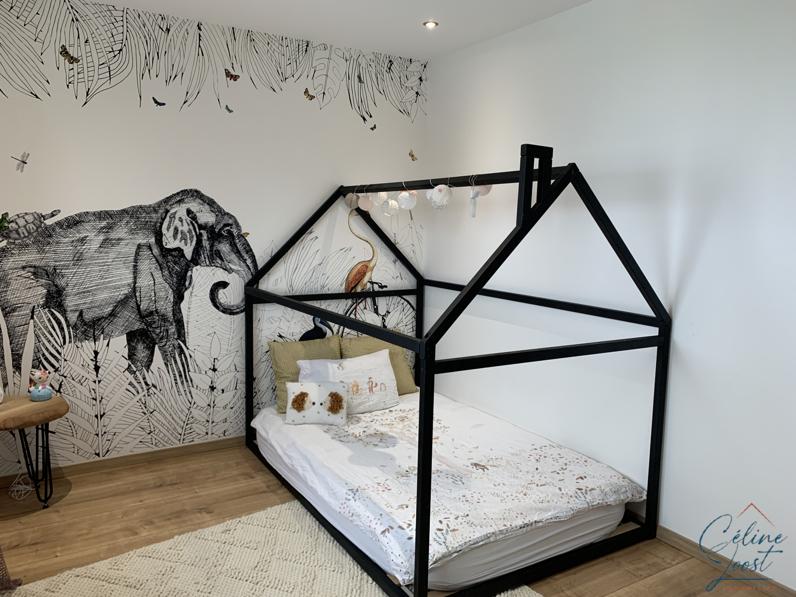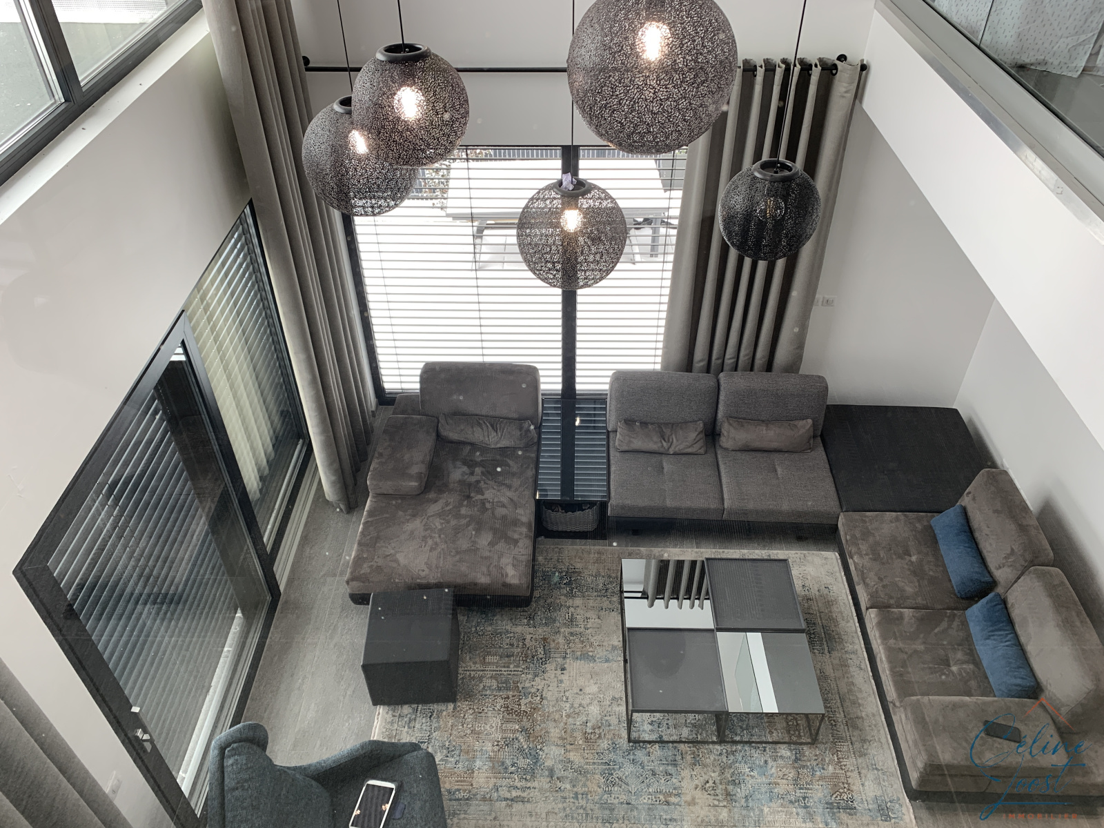 Au 1er - une mezzanine avec vide sur le salon, un bureau en verrière, 2 chambres, une grande salle de bains, une buanderie et un WC.