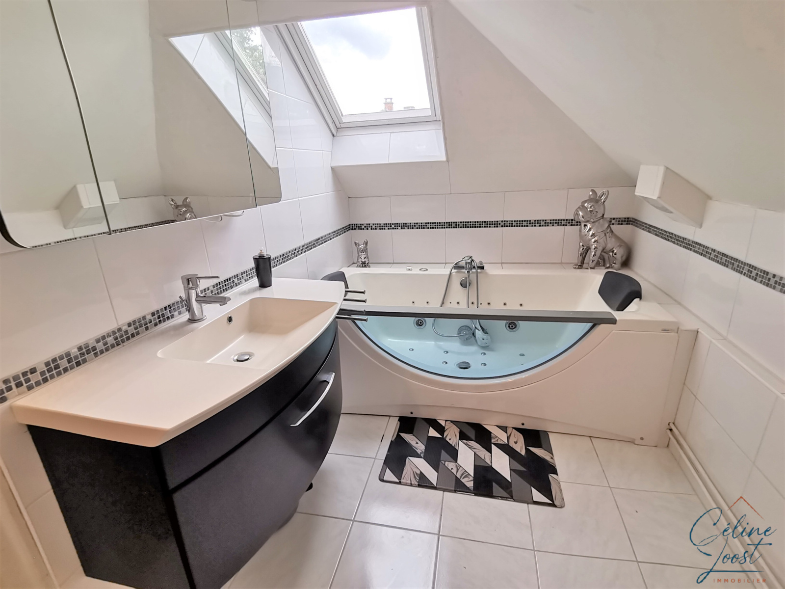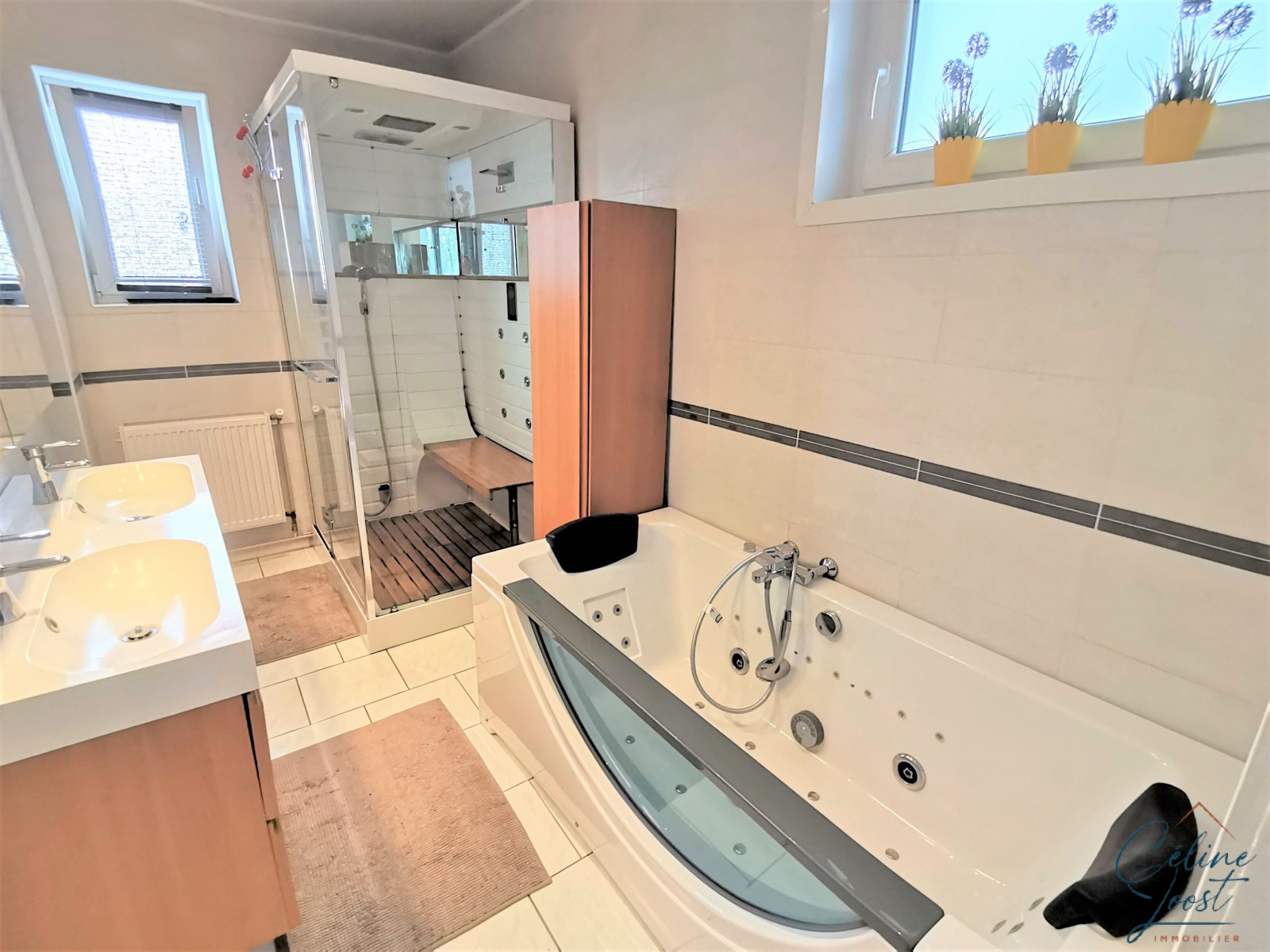 Au 1er étage : un dégagement, 3 chambres dont une avec accès à la seconde terrasse, une SDB (avec baignoire balnéo et douche "sauna") et WC séparé.