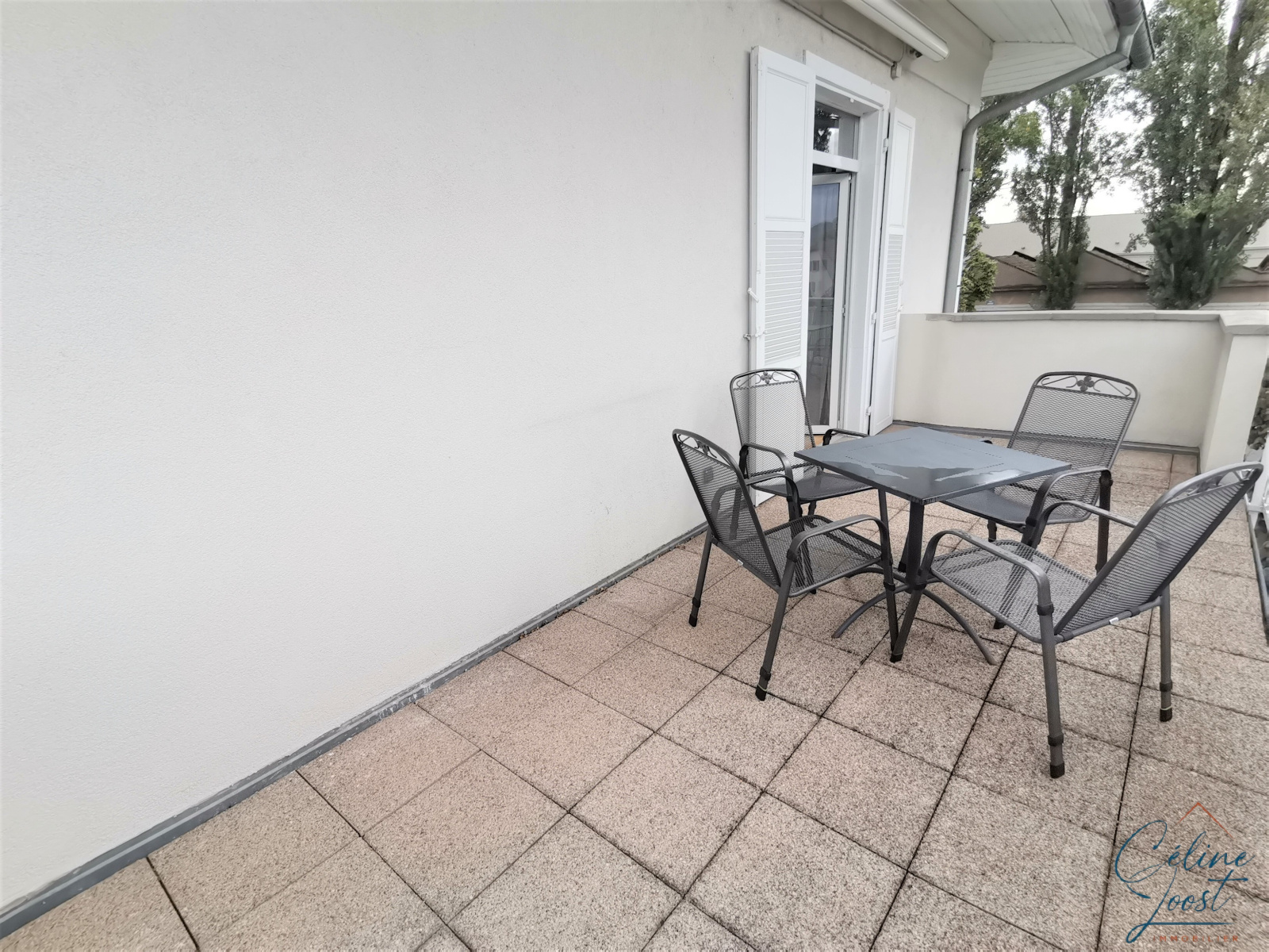 Au RDC : une entrée avec dégagement, un vaste salon/séjour avec accès à la terrasse, une cuisine équipée séparée (avec accès à l'extérieur), un débarras et un WC.