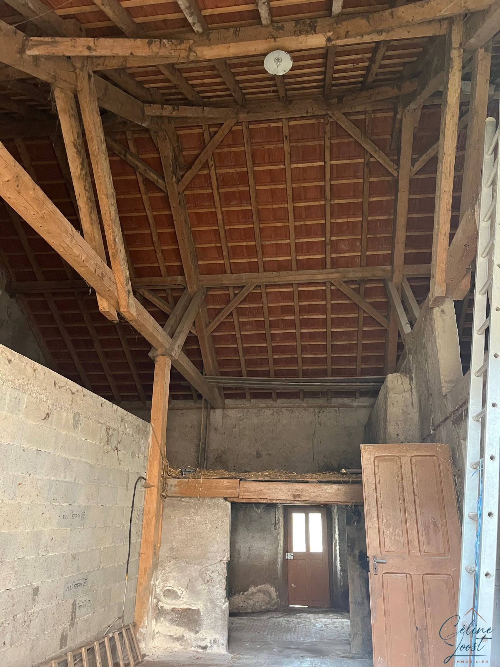 Au RDC, vous trouverez un spacieux hall d'entrée, un salon, un séjour, une cuisine indépendante avec accès au jardin, une chambre, une pièce d'eau et un accès à la grange.