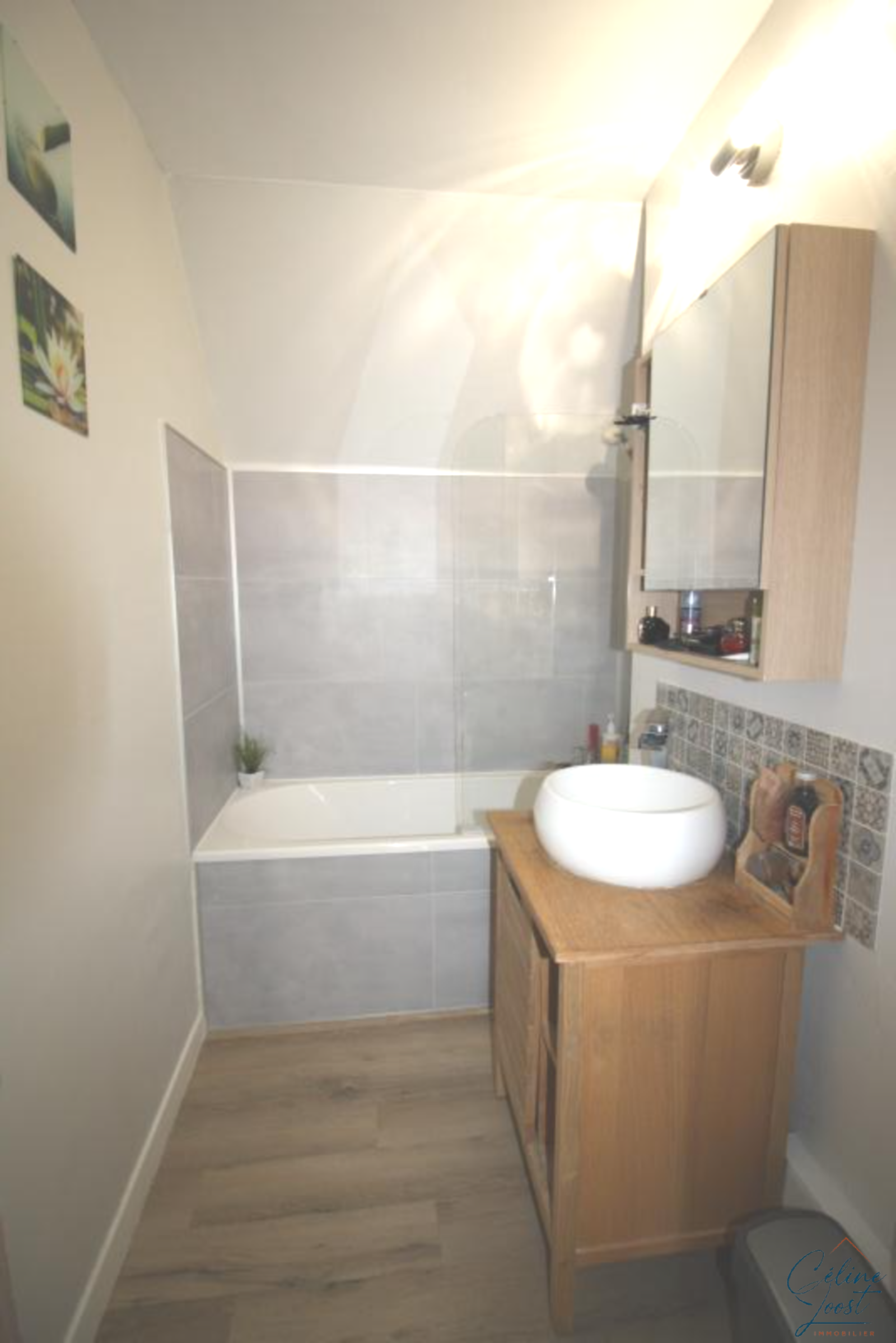 Il comprend : - une entrée et un dégagement - une cuisine semi-équipée ouverte sur le salon/séjour - une grande chambre (19 m2) - une chambre (11 m2) - une salle de bains - un WC