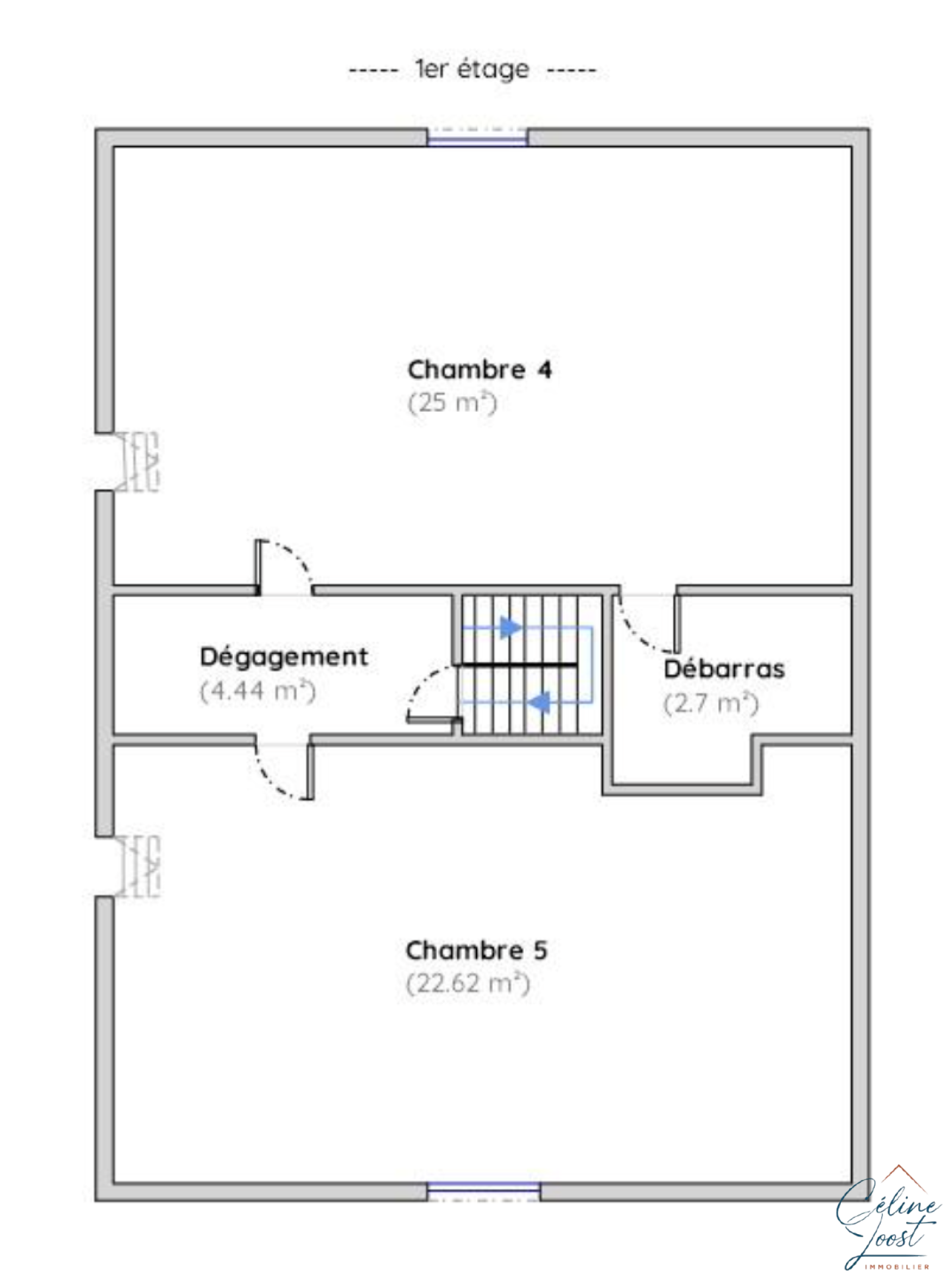 Au 1er : un sas dessert deux grandes chambres de 25 et 22,6 m2.