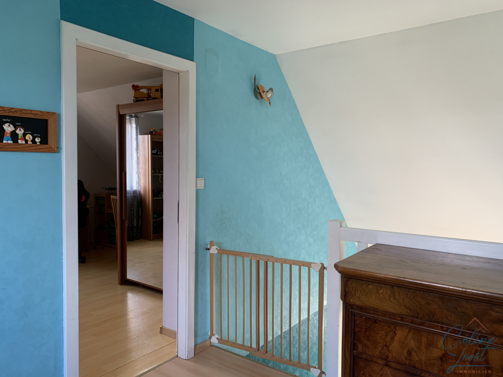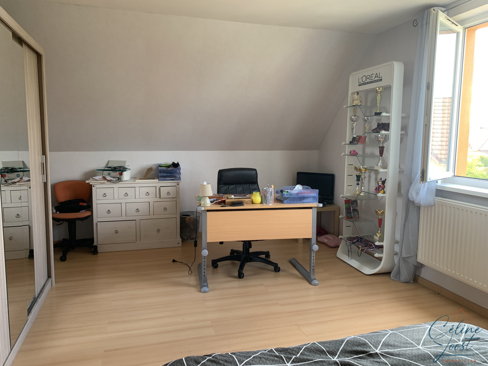 Au 1er : une mezzanine / bureau, deux grandes chambres (22,2 m2 et 21,4 m2) et un WC.