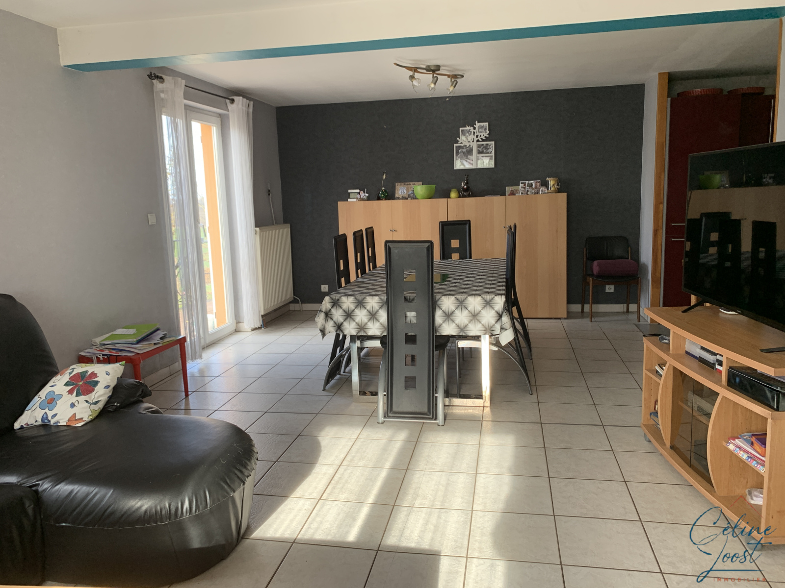 Lumineuse maison individuelle de 2002 de type Plain-pied, d'env. 133 m2 au sol sur 6,69 ares, située dans un quartier calme en bordure de champs.