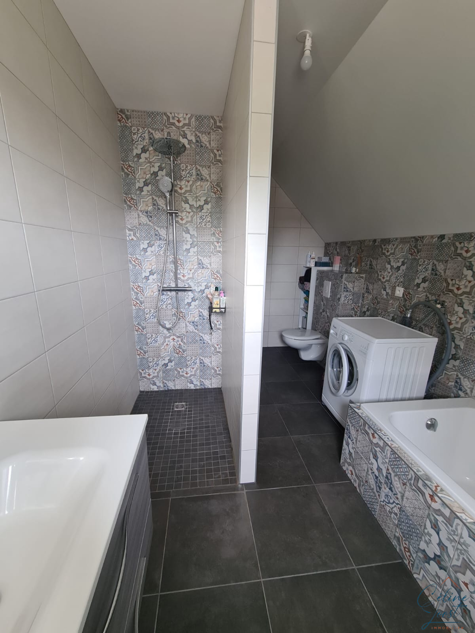 Au 1er, un dégagement dessert 3 chambres et une salle de bains avec douche, baignoire et WC.