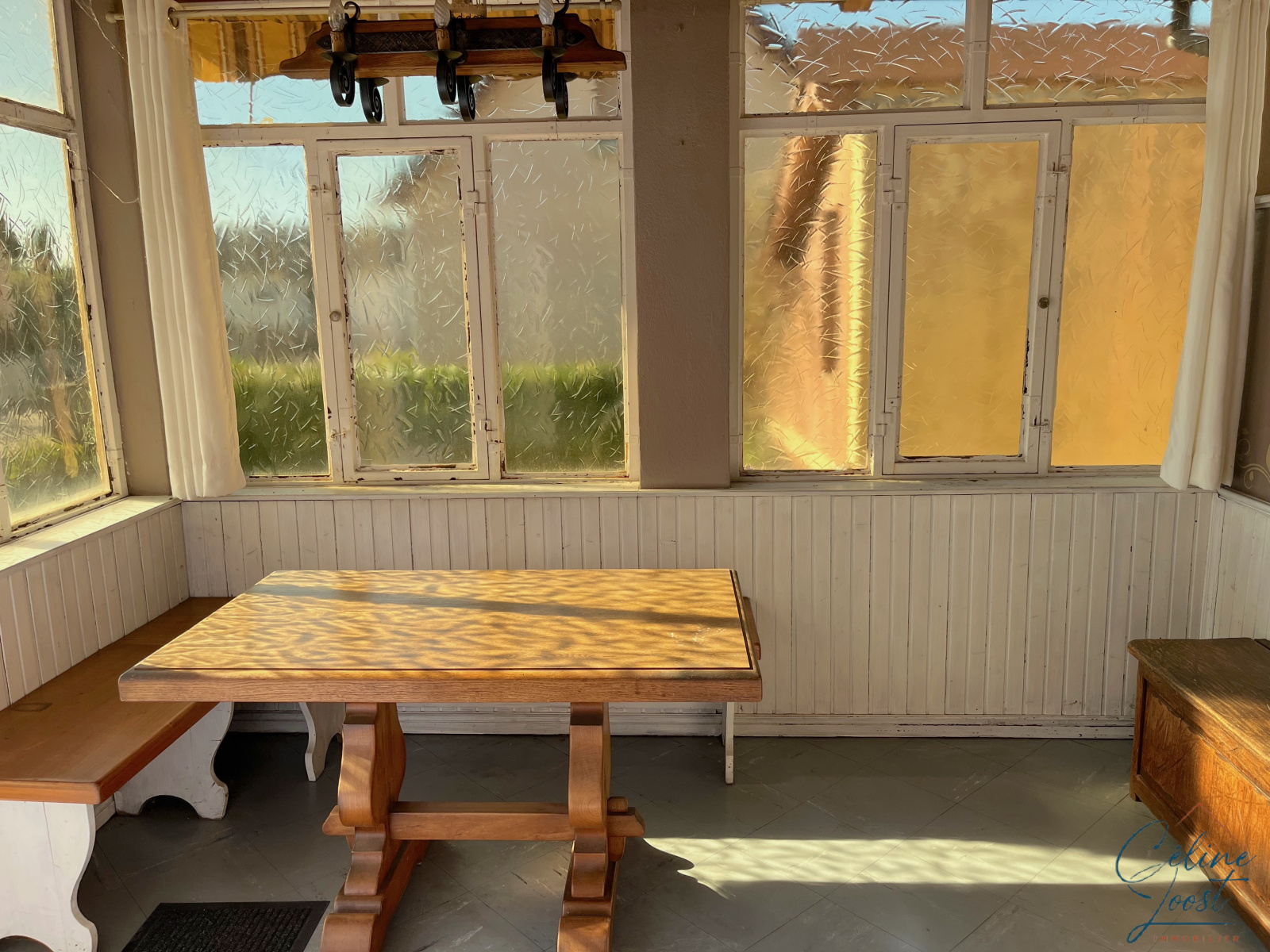 Au RDC vous trouverez une entrée, un dégagement, une cuisine indépendante, une espace repas / véranda attenant avec accès au jardin, un salon/séjour, une chambre, une salle de bains et un WC.