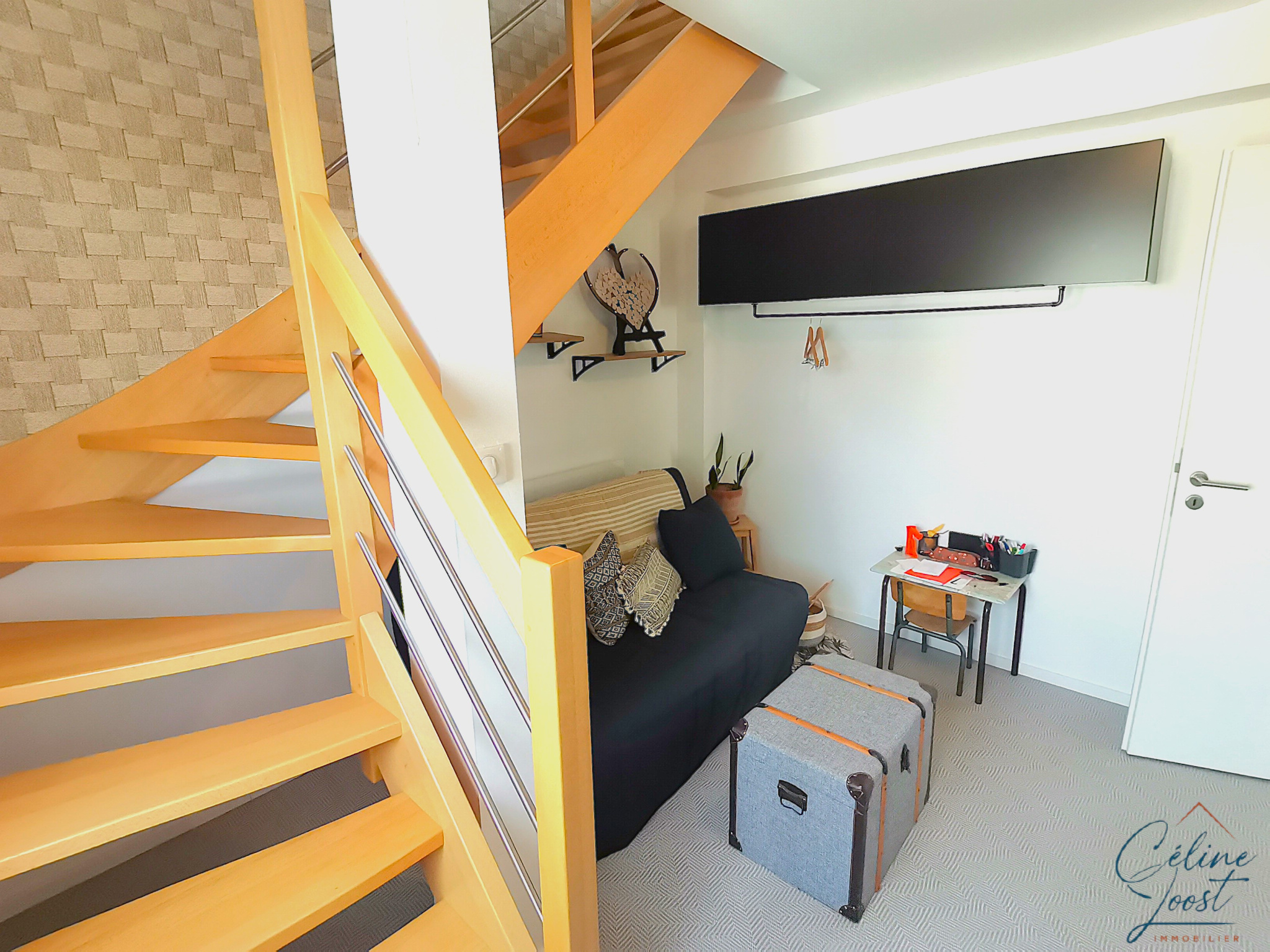 Au 1er étage : une spacieuse mezzanine avec accès à la terrasse de l'étage et desservant 2 chambres, une SDB et un WC séparé.