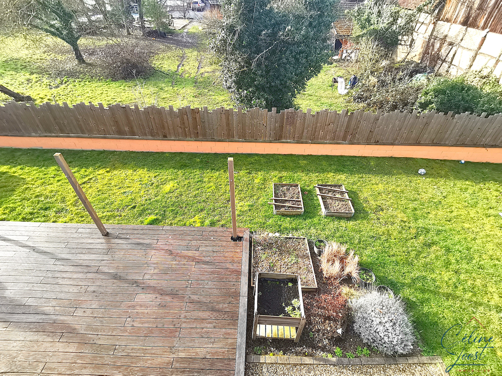 A l'extérieur, vous disposerez d'une terrasse (bois) et d'un jardin vous permettant la création par exemple d'un espace piscine !