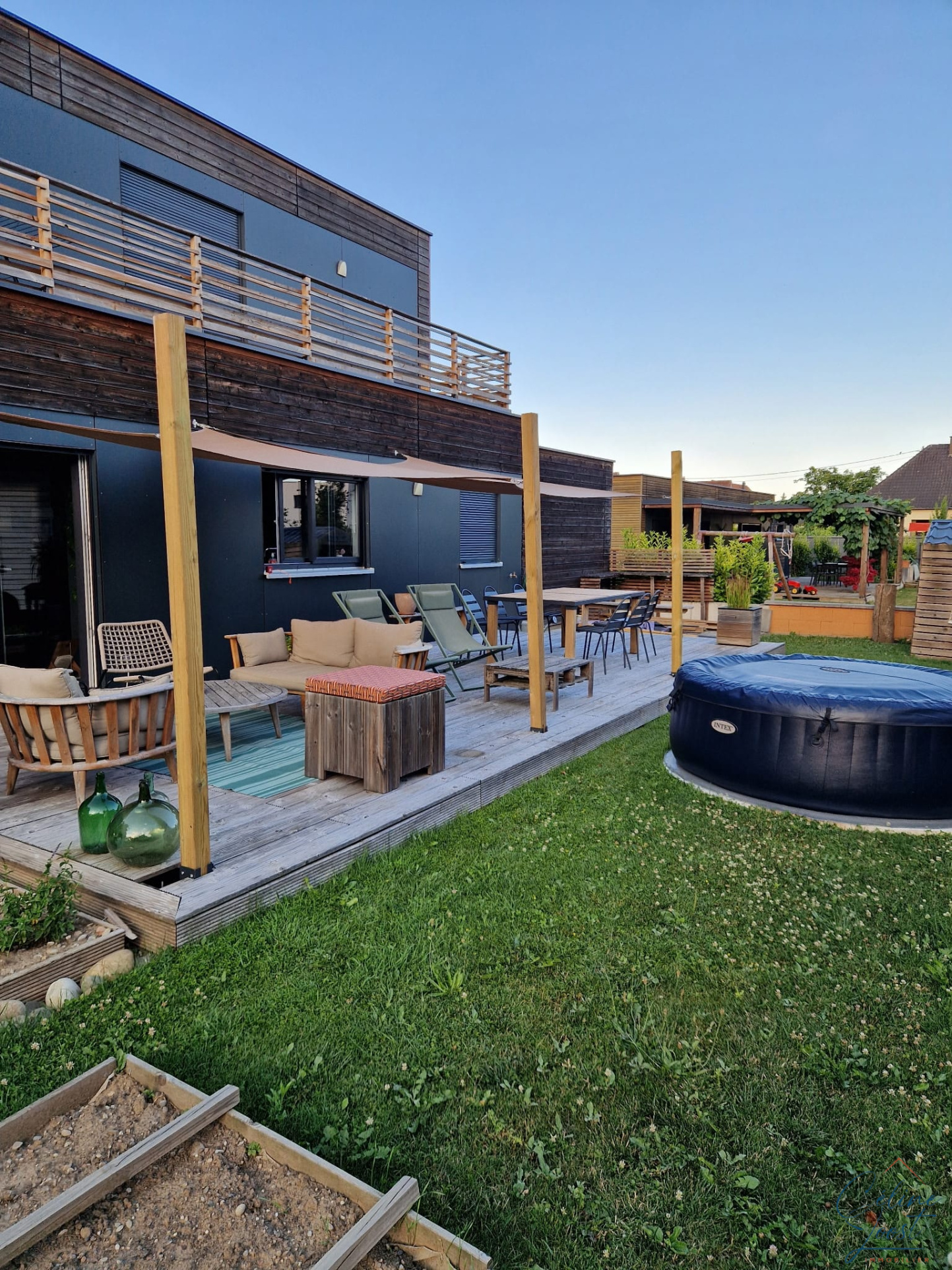 Votre agence Céline Joost Immobilier vous propose en exclusivité cette superbe maison BOOA de 2018 (extension de 2021) située au sein du village de Mackenheim, à 3 kms de Marckolsheim, 15 kms de Sélestat et proche de la frontière allemande.