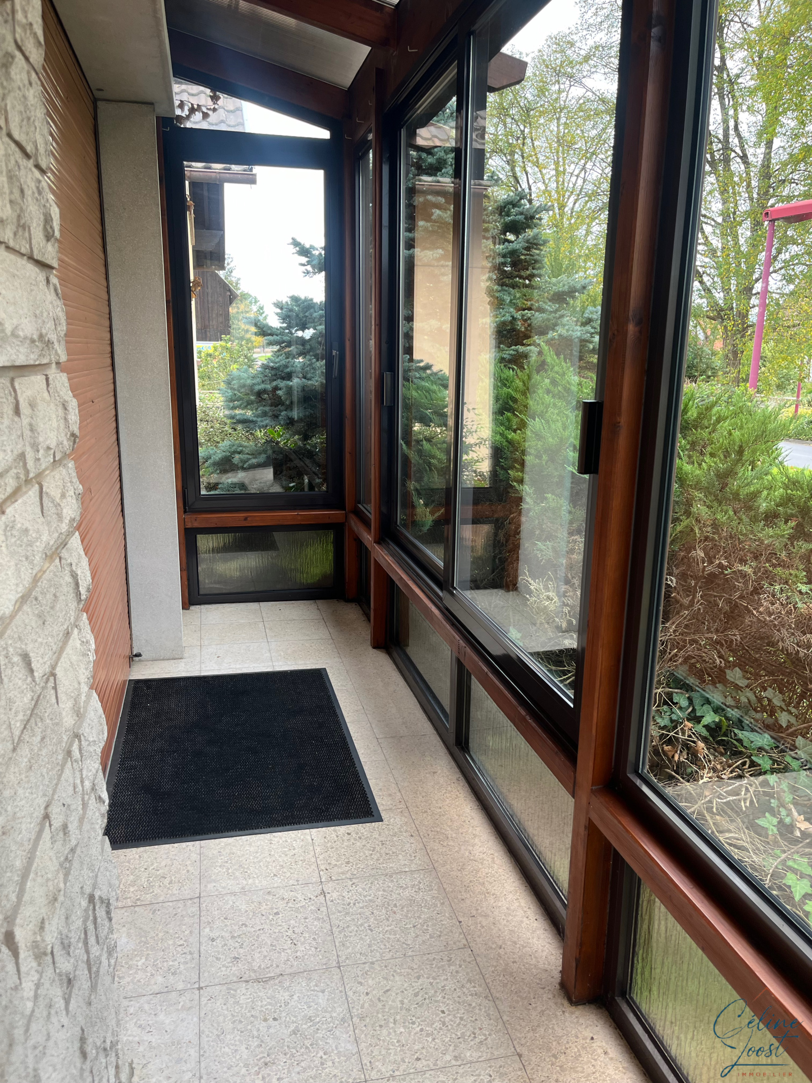 Au RDC vous trouverez une véranda /entrée, un dégagement, un salon/séjour, une cuisine séparée, deux chambres, une SDB, un WC.
