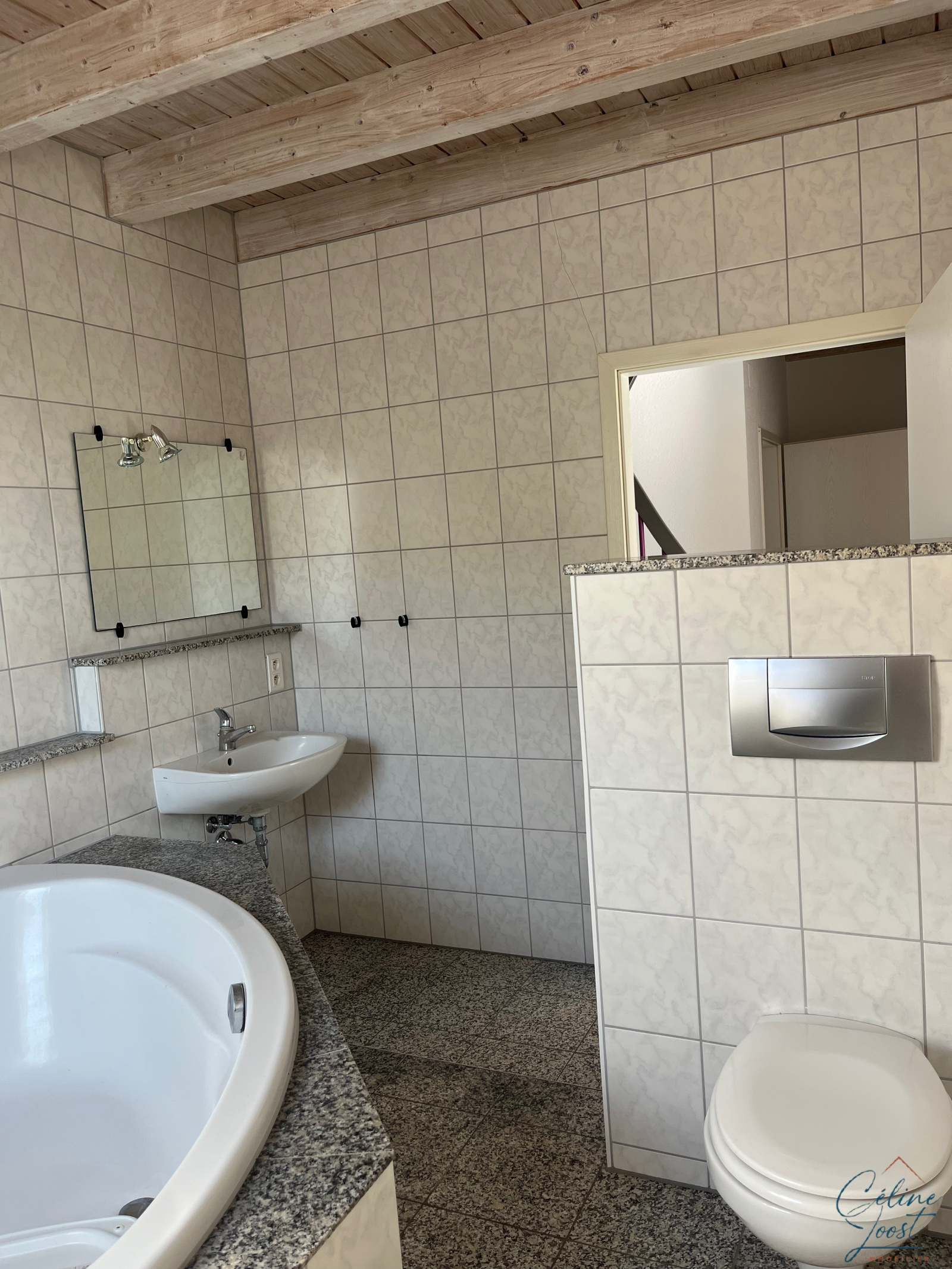 - Au RDC, un appartement 3 pièces de 76 m2, 2 chambres, en rez-de-jardin.