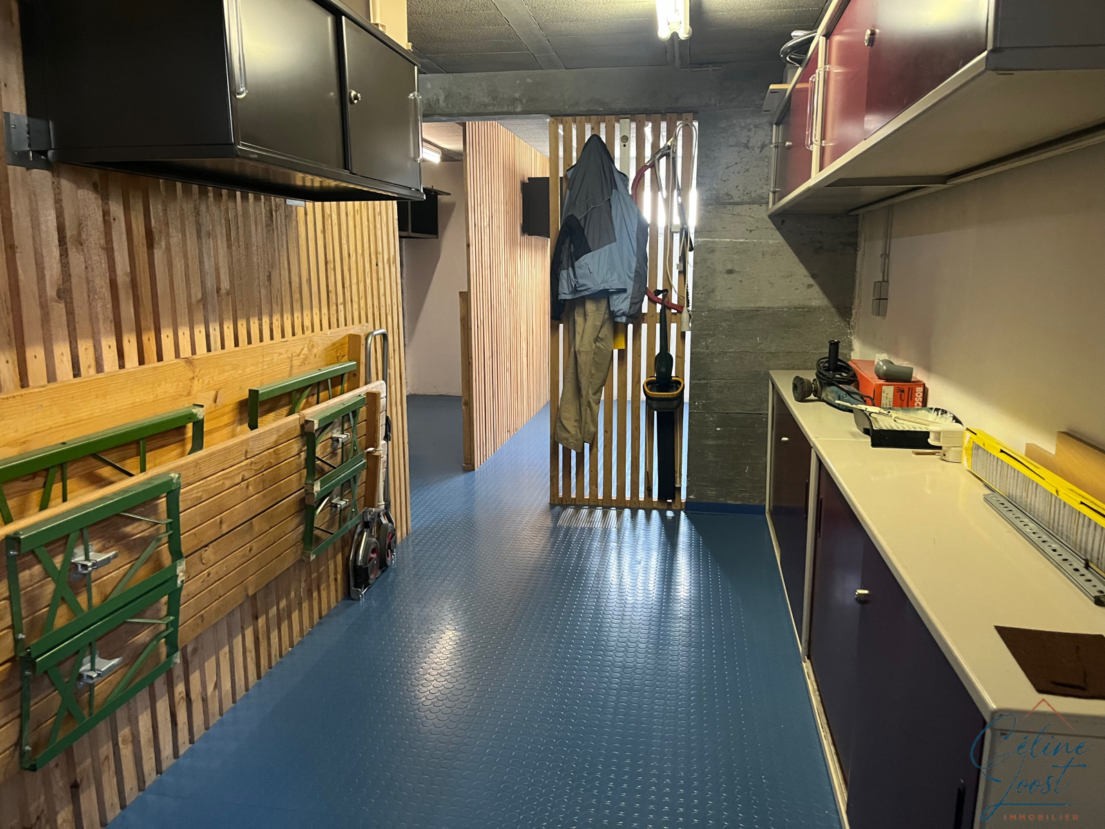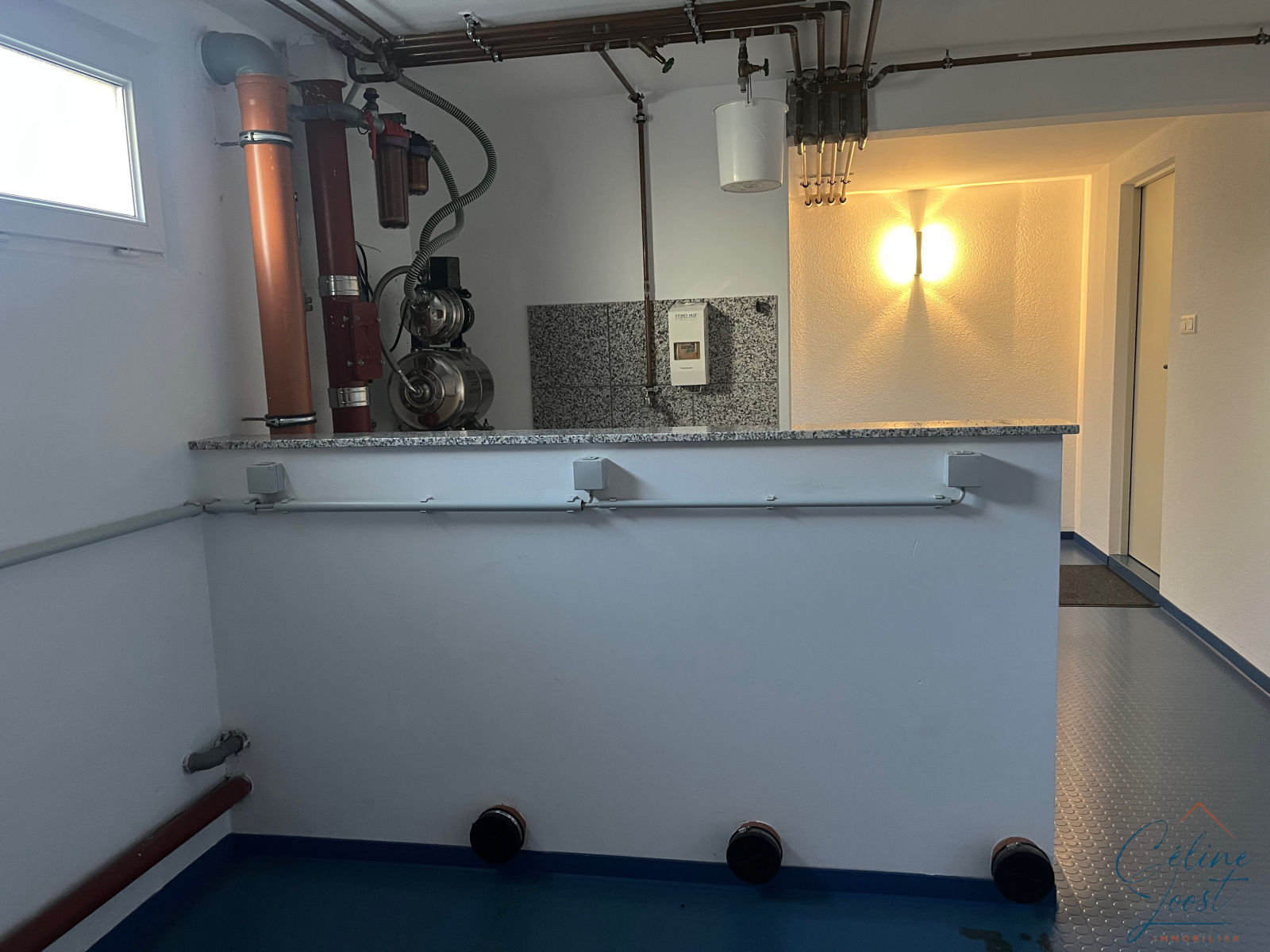 Le sous-sol est totalement aménagé et se compose d'un STUDIO de 31,5 m2, de caves compartimentées et d'un espace commun buanderie.