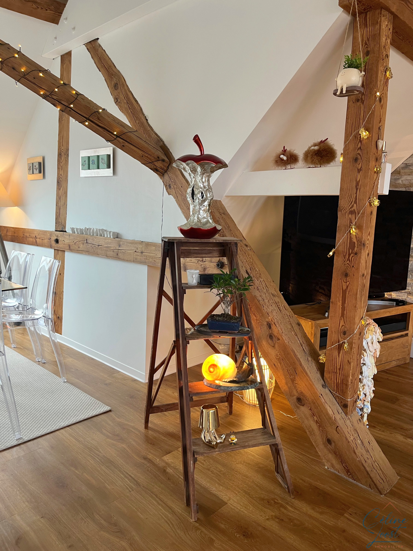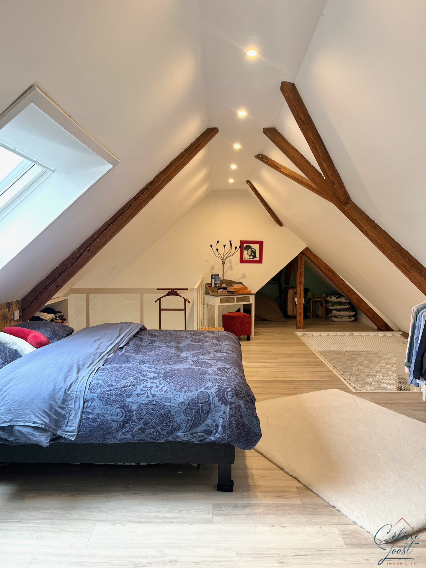 A l'étage supérieur, vous trouverez une belle chambre sous pignon, avec un "filet - mezzanine" pour un espace lecture ou détente cosy !