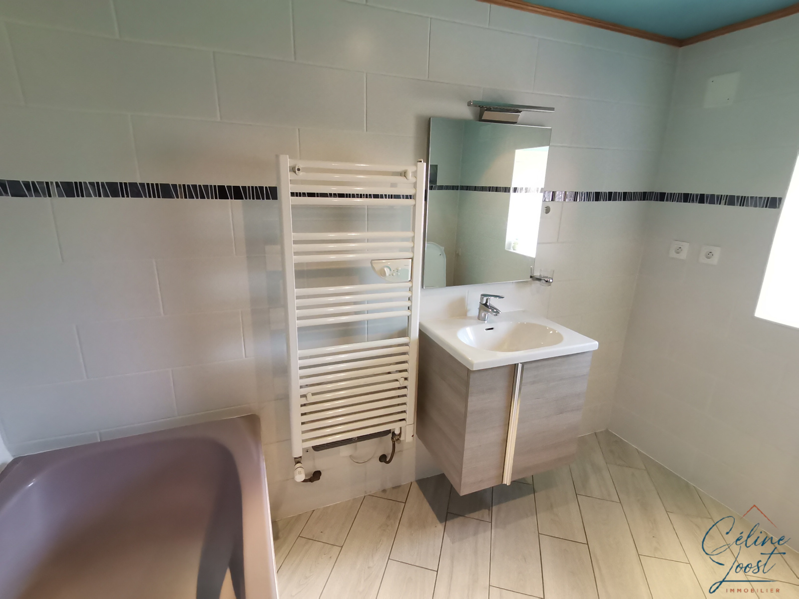 Au 1er étage, vous trouverez un palier avec dégagement et armoire murale, un salon/séjour, une cuisine équipée séparée (possibilité d'ouverture sur la pièce de vie), 2 chambres, une SDB avec WC et un cellier.