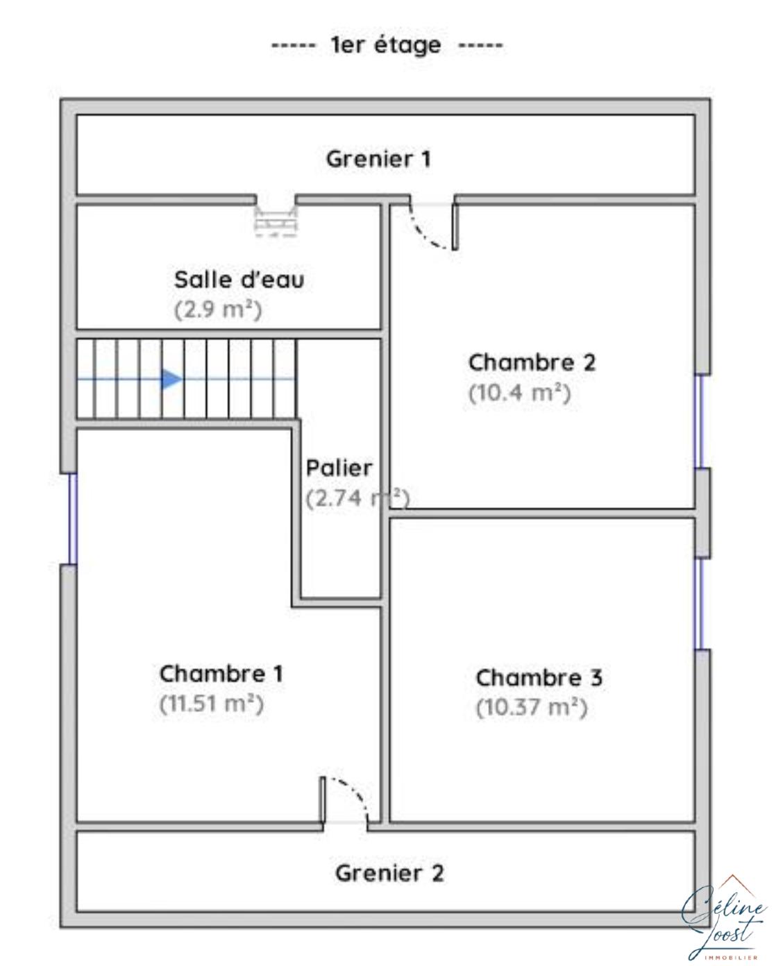- Au 1er : un dégagement dessert 3 chambres et une petite salle d'eau.
